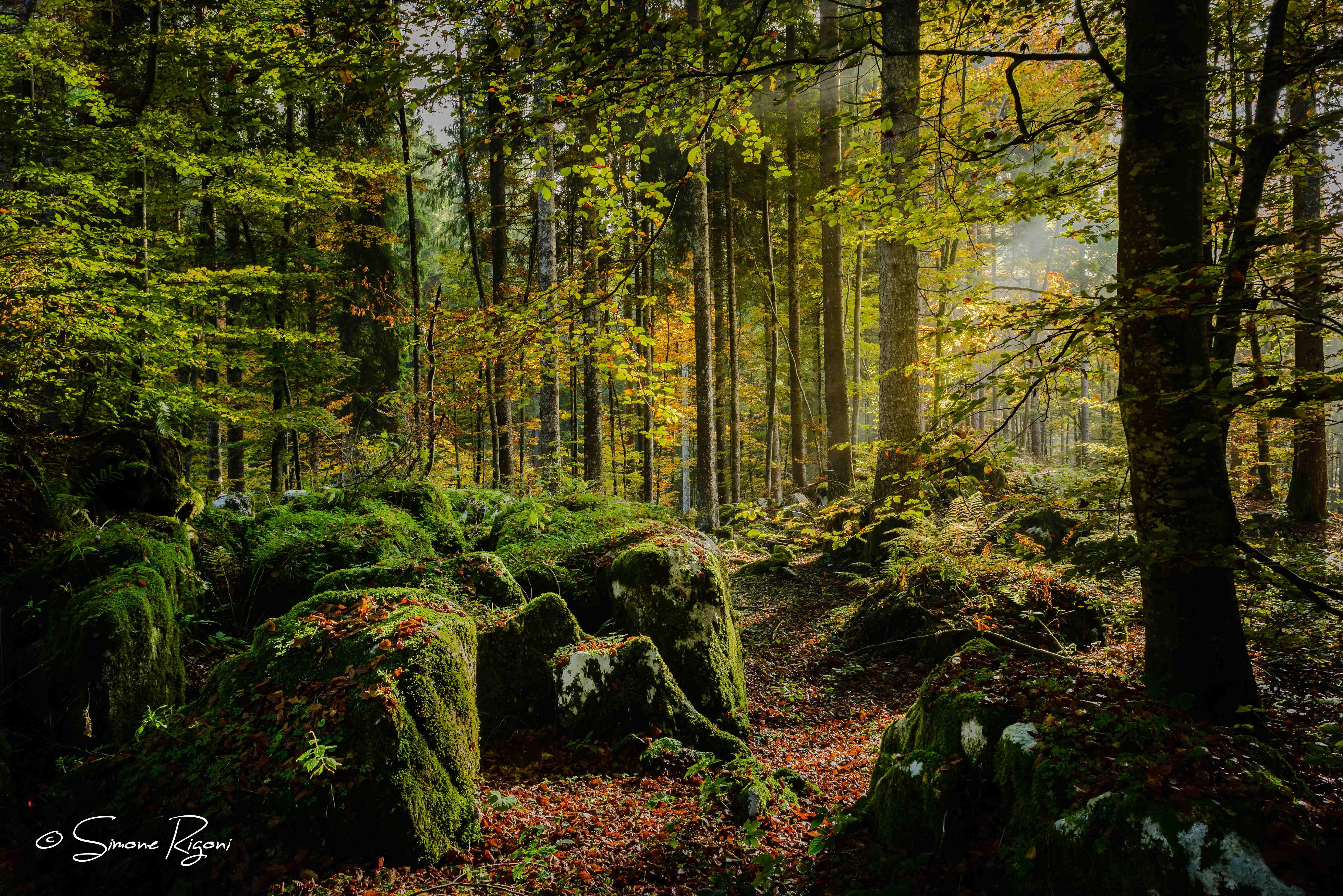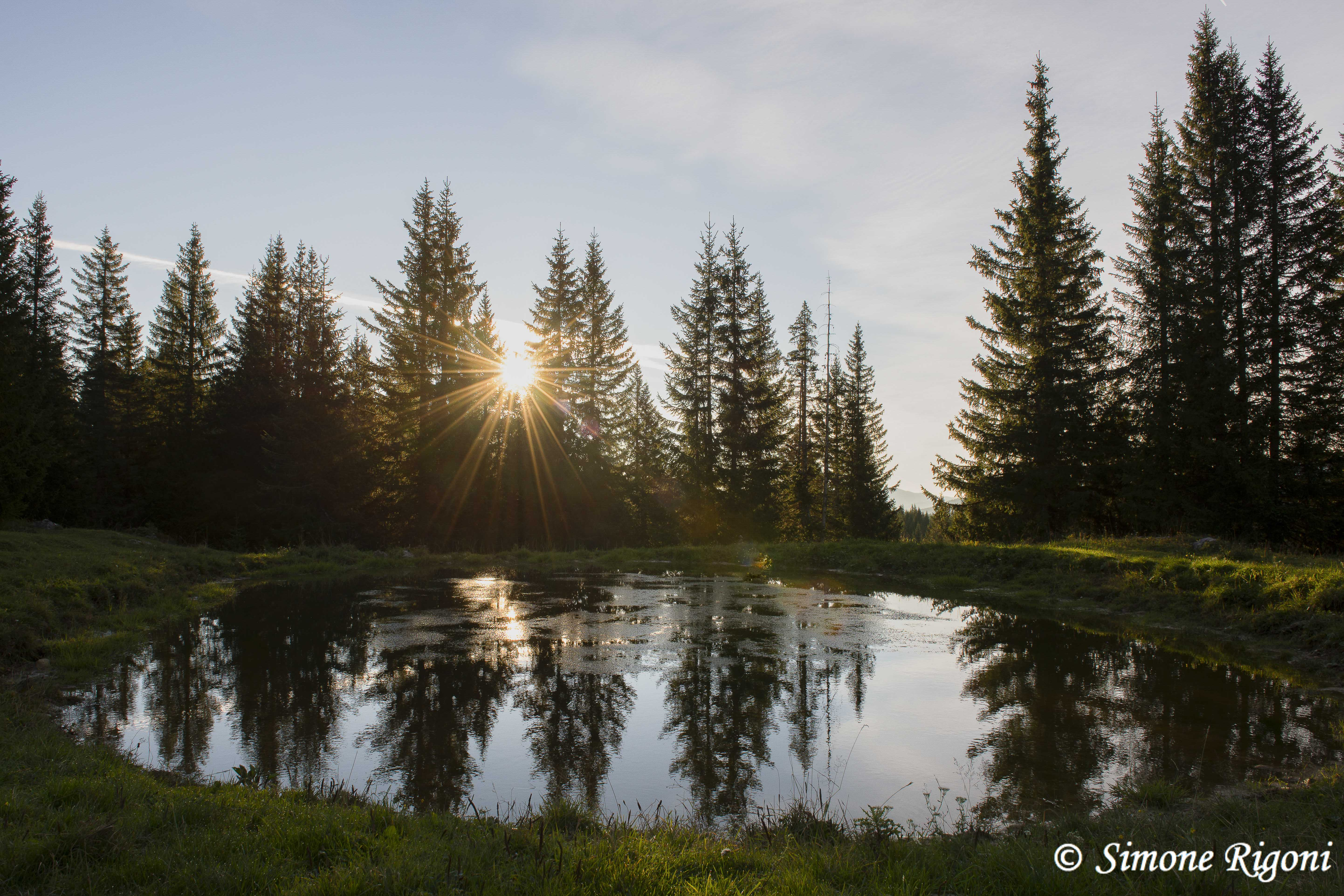 Pallidi raggi di sole abbelliscono la grotta del lago